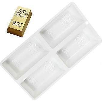 Silicone Cake Mold Gold Brick Shape Nonstick Food Grade for Baking Chocolate Soap 4Cell