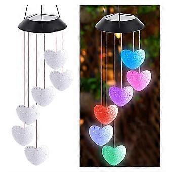 Solar Wind Chime Lights Heart Shape Color Changing LED Solar Powered Waterproof Outdoor Hanging Decor (1pcs)
