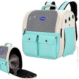 Cat Backpack Breathable Mesh Cat Carrier Outdoor Walking With Adjustable Waist Belts And Padded Shoulder Straps Green