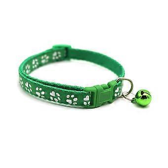 Cat Collar with Bell, Green Paw Print Design, Adjustable Size, Durable Material, Suitable for Cats