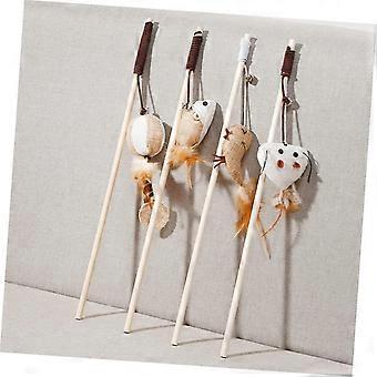 Cat Teaser 4 Pack Wooden Handle Interactive Set With Plush Pendants Ring Bell For Indoor Play