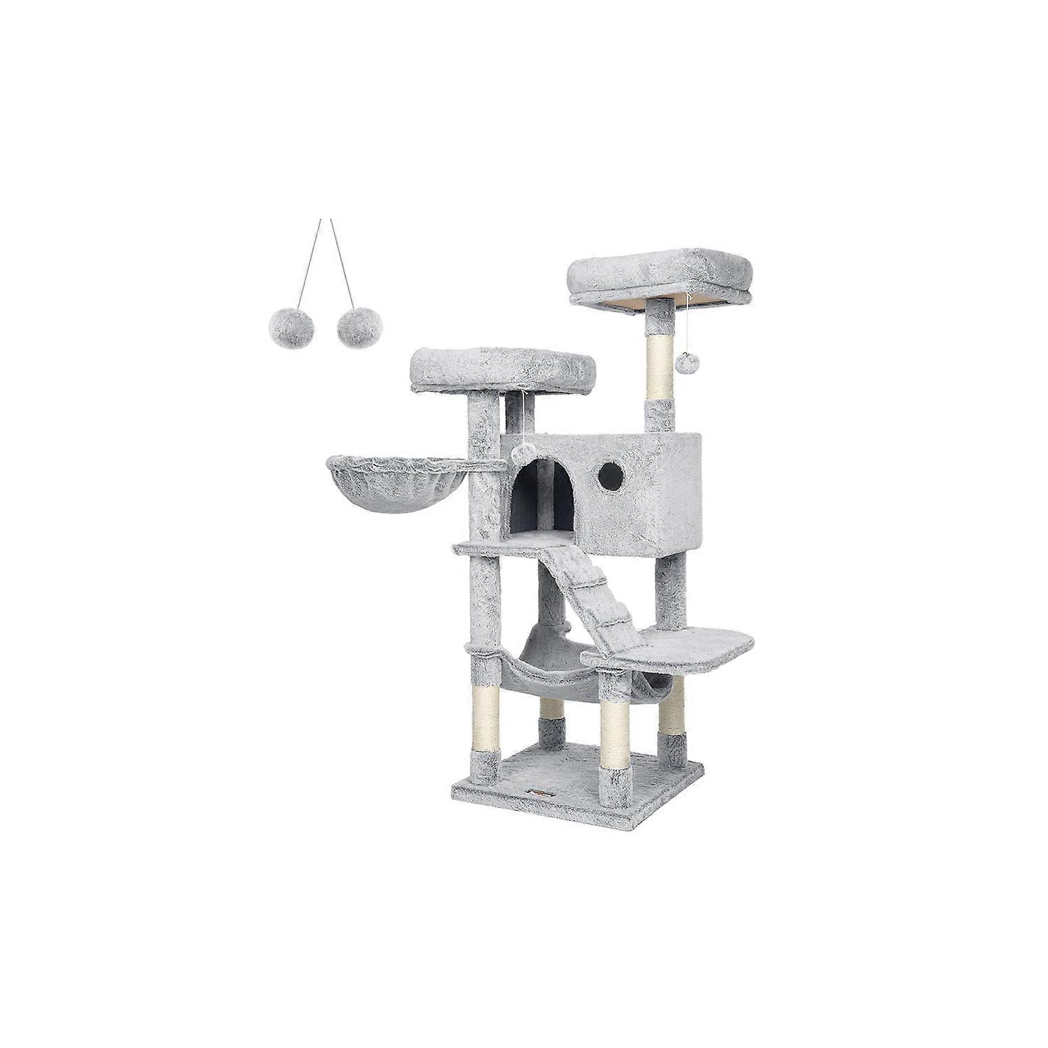 Homestorecity Kattenboom, Kattenboom met Zachte Hoes, Lichtbruin PCT162M01 - Twee schattige kittens lopen rond in de creatieve werkplaatsen van Homestorecity, inspecteren persoonlijk elke krabpaal en geven feedback. Zo kunnen de ontwerpers van Homestorecity uit de eerste hand, of zelfs rechtstreeks van hun poten, leren of de producten voldoen aan de eisen van veeleisende snorharen. De hoogtepunten van deze krabpaal in één oogopslag: - 500 g/m² pluche zorgt voor een zacht en comfortabel oppervlak - 2 platformen bovenop om te observeren - 1 gezellig hol om verstoppertje te spelen - 1 ligstoel om te ontspannen - 1 stevige hangmat om een dutje in te doen - Sisalpalen om de klauwen te scherpen - 1 trap om gemakkelijk op en af te klimmen Productdetails: - Kleur: grijsblauw - Materiaal: spaanplaat, 500 g/m² pluche, sisal - Afmetingen: 49 x 49 x 135 cm (L x B x H) - Gewicht: 15 kg Inhoud van de levering: - 1 x Krabpaal - 1 x Anti-kantelvoorziening - 1 x Accessoirepakket - 1 x Gebruiksaanwijzing Homestorecity Opmerkingen: - Als uw katten op de haarbal of het elastiek kauwen, verwijder dan onmiddellijk het speeltje en bewaar het op een ontoegankelijke plaats. - Als de krabpaal beschadigd raakt, repareer of vervang deze dan onmiddellijk om letsel te voorkomen. om schade door beschadigde onderdelen te voorkomen.