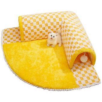 Cat Tunnel Bed Cosy Cat Bed With Tunnel Interactive Pet Cave, Yellow Cat Bed