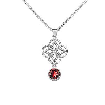 Celtic Eternity Knotwork Necklace Pendant - A Real Garnet Gemstone - Includes A 22"Silver Chain