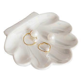 Ceramic Shell Jewelry Organizing Plate for Dressing Table, Elegant Storage for Accessories, Small Size, White Color