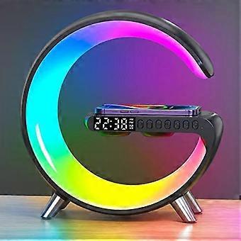 Charger Atmosphere Lamp, RGB Mood Light with Time Display, Bluetooth Speaker, Alarm Clock, Black