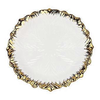 Charging Plate With Golden Edge Ceramic Round Plate 8 Inch Tableware Salad Plate For Cake Snack Catering Main Course