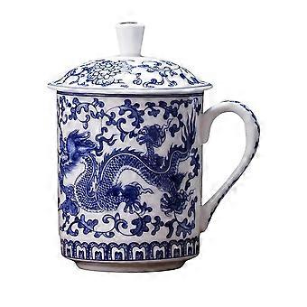Chinese Tea Cup with Lid, HandPainted Blue and White Porcelain Tea Mug, Ceramic Infuser for Loose Leaf Tea