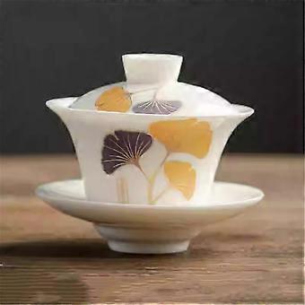 Ceramic Tea Cup with Lid, Large Capacity HeatResistant Glaze, Traditional Chinese Gaiwan Tea Set