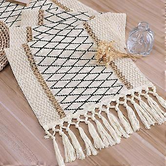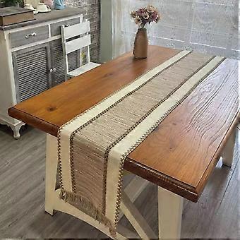 Woven Table Runner with Fringe Farmhouse Braided Stripe 30x160 Cm Rustic Natural Decor For Dining Table