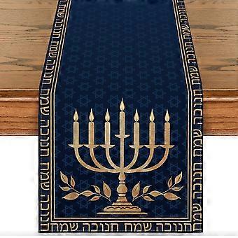 Hanukkah Table Runner 13x90 Inch with Candle Menorah and Hexagram, Blue Chanukah Table Decoration