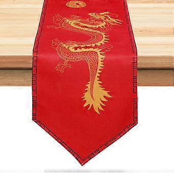 Chinese Year Table Runner 13x72 Inch Red Linen with Festive Dragon Design for Spring Festival