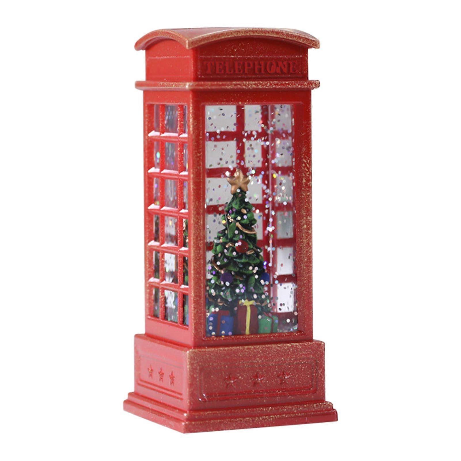Christmas Snow Globes Lantern, Illuminated Glitter Water Lantern, Telephone Booth Design, Festive Tabletop Ornament