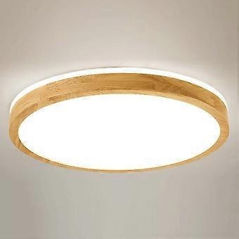 Circular Ultra-Thin Flat Surface Lights LED Vintage-Style Ceiling Lights With Wooden Panel, Cool White, 19.7-Inch