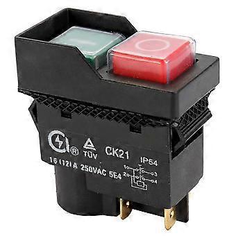 CK21 250V 16A 4-Pin Electromagnetic Safety Pushbutton Switch for Metal Cutter Grinder Machines, Black