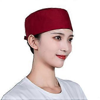 Classical Adjustable Work Caps Chefs Hat for Hotel Staff and Restaurant Service Breathable Flat Hats for Sushi Waiter Wine Red