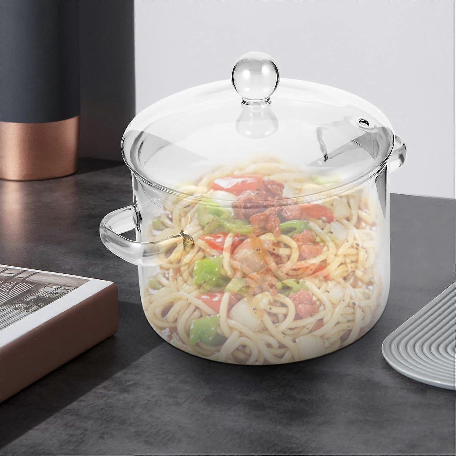 Clear Glass Cooking Pot for Pasta and Soup with Lid, 4 Quart Capacity, Stovetop Safe, Heat-Resistant Design