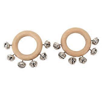 Hand Jingle Bells 2pcs Sleigh Bells with Wooden Handle 8cm Bright Tone for Christmas Party