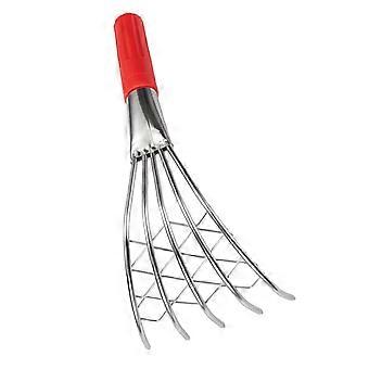 Coastal rake with wooden handle, handcrafted tool for clams, oysters, and seafood, suitable for beach and versatile uses, durable design with claws.