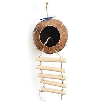 Coconut Shell Birdhouse with Ladder for Budgies and Small Pets, Natural Hiding Spot, Random Color Variations