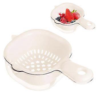Colander with Handle Double Layer Strainer Basket for Vegetables Pasta Fruit Washing, Beige