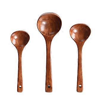 3Pcs Solid Wood Soup Spoons Set with Long Handle Design for Cooking and Serving in Kitchen and Dining