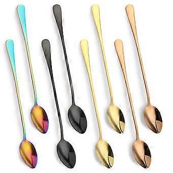 7.7 Inch Stainless Steel Long Handle Tea Spoons Set, 8 Pack Colorful Coffee and Ice Cream Mixing Spoons