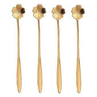 16Piece 7 Inch Gold Stainless Steel Long Handle Coffee and Tea Spoon Set with RoseShaped Heads