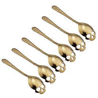 Gold 304 Stainless Steel Skull Coffee and Tea Spoon Set, Mirror Finish, Ergonomic Handle, 6 Pack