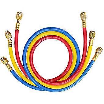 HVAC Charging Hose Set 1/4 Inch SAE 36 Inch Color Coded Pressure for R12 R22 R502 Pack of 3