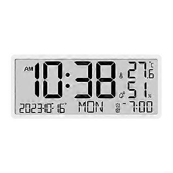 Comprehensive LCD wall clock with alarm function, displaying time, date, day of the week, temperature, and humidity (white)