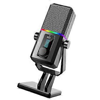 Computer Gaming Microphone USB Desktop Microphone With LED Light, 14mm Large Diaphragm For Streaming And Podcasting