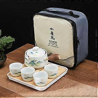 Portable Travel Tea Set Ceramic Teapot with Infuser and Cups Chinese Style Carrying Bag Mountain
