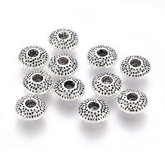 Tibetan style Alloy Beads Lead Free Cadmium Free Rondelle Silver 8x8x3.5mm Hole: 2mm