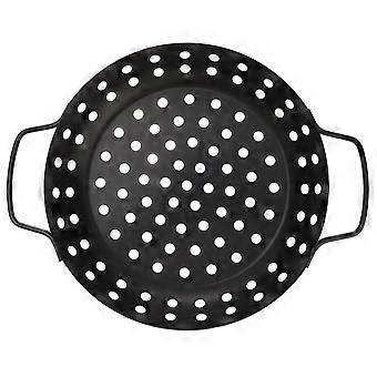 Non Stick BBQ Grill Pan with Drain Holes for Outdoor Cooking Vegetables Meat Camping Patio