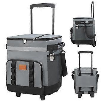 Cooler With Wheels And Handle 35L Collapsible Rolling Cooler Bag Waterproof Insulated Grey With Zipper Closure