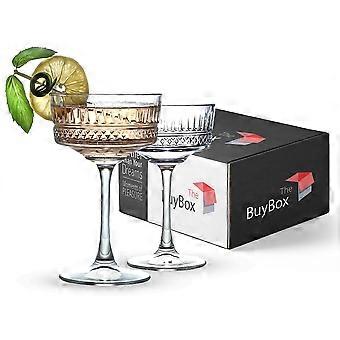 Vintage Coupe Glasses Set of 2, 8.8oz Champagne and Cocktail Glassware with Timeless Design