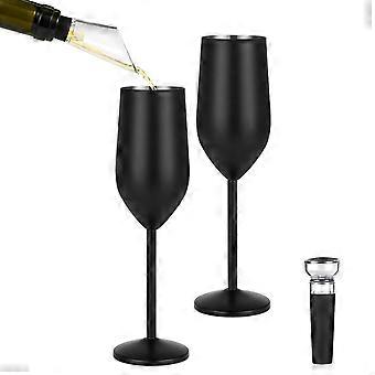 2 Pack Black Stainless Steel Champagne Flutes 8oz Shatterproof Insulated Glasses for Weddings