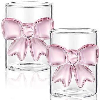 2 Pcs Pink Bow Champagne Glasses Set 8oz Elegant Clear Drinkware for Weddings and Parties