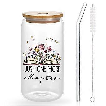Book Lovers Gifts Glass Tumbler with Straw 16oz Unique BookThemed Design Bamboo Lid for Readers