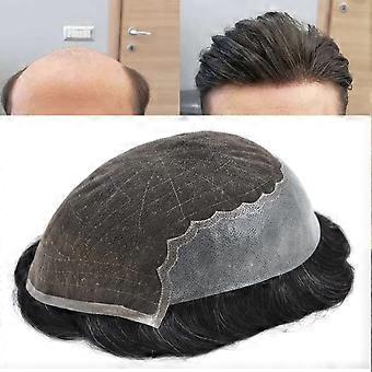Men's Hair System Swiss Lace European Human Hair Toupee 7x9 1B Off Black Natural Hairline