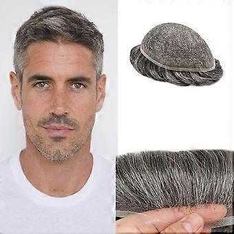 Men's Hairpiece Ultra Thin Skin Base Real Human Hair Toupee Natural Hairline 8x10 #540/#5 40% Grey
