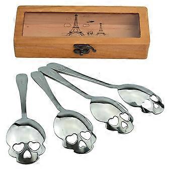 Set of 6 Silver 304 Stainless Steel Sugar Skull Tea and Coffee Spoons, RustResistant Durable Finish