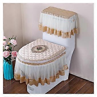 Toilet Seat Cover Set with Lace Design, 3pcs Warm Breathable Bathroom Mat and Zipper Closure