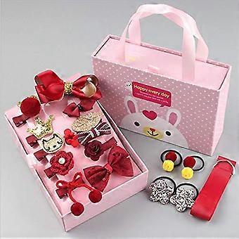 Baby Girl Hair Accessories Gift Set, 18Piece NonSlip Clips and Ties with Chiffon Bows, Red