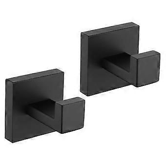 2Pcs Black Stainless Steel Wall Towel Hooks Sleek Modern SpaceSaving Coat and Robe Hangers for Bathroom, Kitchen, Hotel