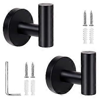 2pcs Matte Black Wall Hooks Stainless Steel Heavy Duty Towel and Coat Hooks for Bathroom