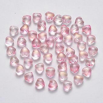 Transparent Spray Painted Glass Beads with Glitter Powder Heart Pearl Pink 6x6x4mm Hole: 0.7mm