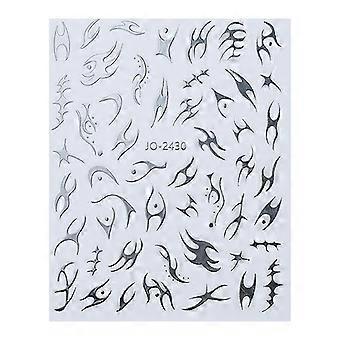 Nail Art Stickers 3D Silver Metallic Flame Decals Removable SelfAdhesive Nail Decoration 2430