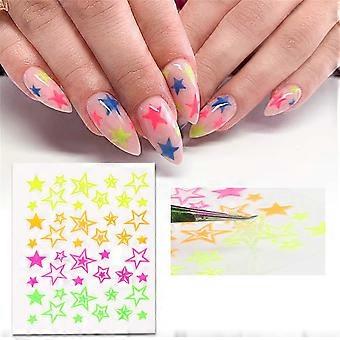 6pcs Glow in the Dark Nail Stickers Set, Self Adhesive Neon Star Nail Art Decals for DIY Manicure
